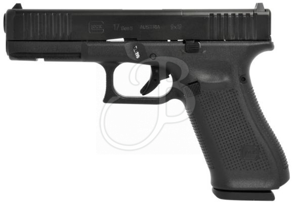 La nuova GLOCK 17 Gen5 ha rimosso le scanalature delle dita sulla parte anteriore del fusto per una maggiore versatilità, ma consente comunque di personalizzare facilmente la presa utilizzando i diversi dorsalini posteriori. Il carrello ha l’eccellente finitura dura nDLC in nero antiriflesso e di serie ha gli intagli di presa anteriori (FS), offrendo all’operatore una trazione sicura del carrello anche con la mano bagnata o sudata. L’ imboccatura del caricatore sul fusto è stata svasata per una maggiore velocità durante il cambio di caricatore. Lo sgancio del caricatore è reversibile e la leva di sblocco del carrello è ambidestra. Ogni G17 Gen5 ha una canna Marksman Barrel (GMB) di grado match che offre una maggiore precisione con rigatura poligonale migliorata. Anche lo scatto è stato migliorato grazie alla molla di sgancio dello scatto. Versione con sistema MOS (Modular Optic System) che permette di montare un punto rosso sul carrello senza dover rimuovere le tacche di mira.